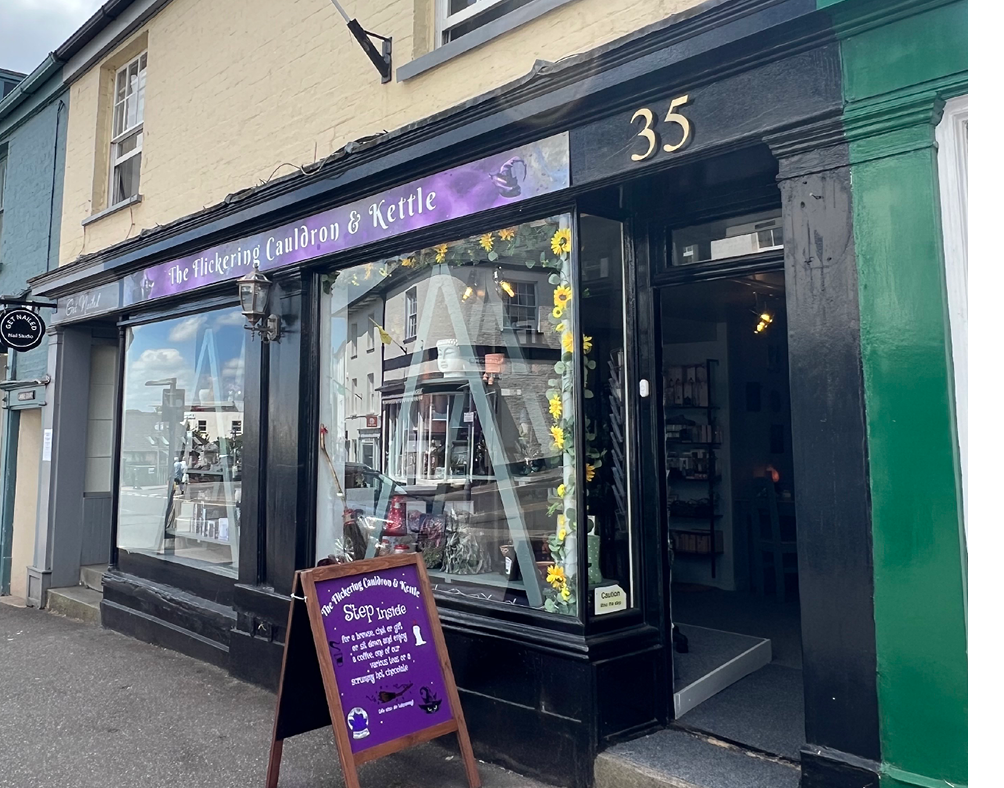 If you’re exploring the delights of Devon, there are plenty of places to stay and/or eat, in Tiverton, and of course, the highlight of your visit will be the Flickering Cauldron and Kettle!